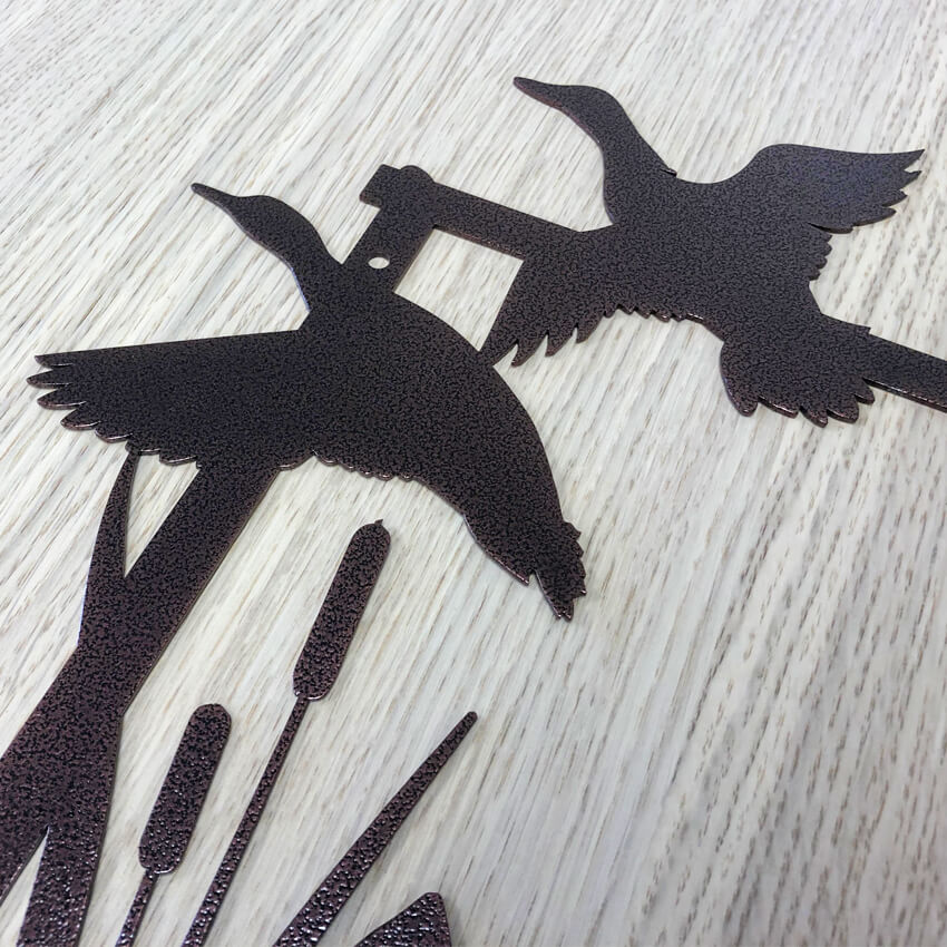 Handcrafted in Texas and personalized with your choice of text, our RealSteel Original Hunting Dog Monogram is a popular gift that attracts many a compliment. Each piece is hand crafted and receives a baked on powder coating to withstand years of indoor/outdoor use.