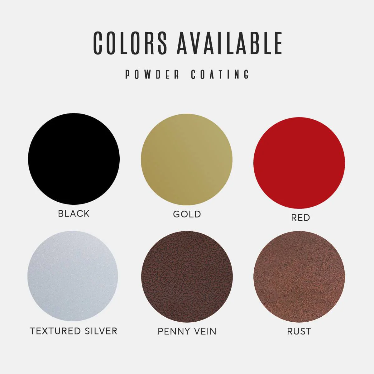 - Available in 6 Colors: Black, Red, Gold, Textured Silver, Penny Vein, Rust