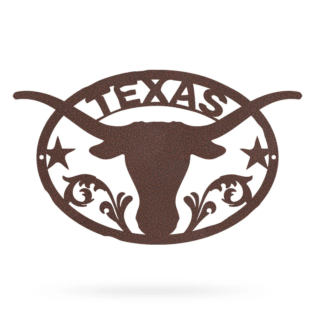 The Longhorn is a timeless symbol of the strength of Texans and the mascot of the University of Texas. Hang it above the mantle, on your door, or anywhere you want to show your Texas pride. Whether you spend your weekends rooting for the Longhorns or just want to have a piece of Texas no matter where you are, it’s a striking sign. Designed and manufactured in America, the Texas Longhorn Wall Decor is available in either black, metal or penny copper. Each piece receives a powder coating to ensure the steel lasts and is protected against rust.